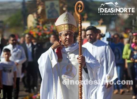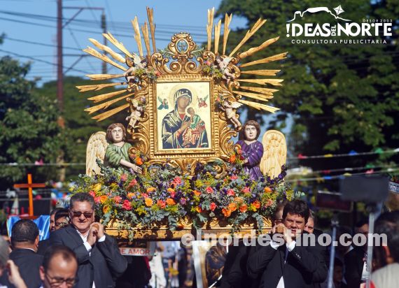La imagen de Nuestra Madre del Perpetuo Socorro se colocó en el escenario, donde se realizó la Celebración Eucarística a cargo del Obispo de las Diócesis de Concepción y Amambay Monseñor Miguel Ángel Cabello. (Foto: Diego Lozano para Ideas del Norte Consultora Publicitaria).