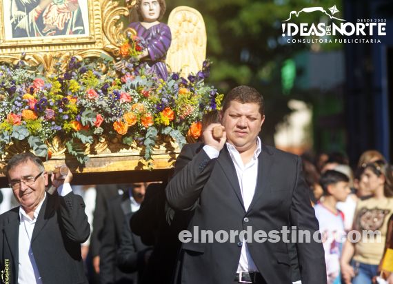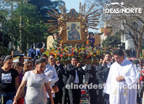 Hoy se realizó la procesión por el centro de la ciudad, con un trayecto de mil doscientos metros, adornados por la alfombra artesanal confeccionada por alumnos del Rosentiel, grupos de fieles y comunidades locales. (Foto: Diego Lozano para Ideas del Norte Consultora Publicitaria).