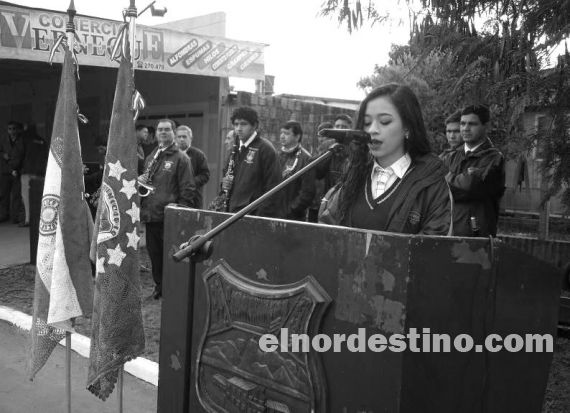 Habló en representación de la juventud la joven Srta. Fabiana Mazacote, alumna del Colegio Privado Ebenezer. Del mismo modo participaron el intendente José Carlos Acevedo y la señora Lurdes Alvarenga, responsable de UPV Chaco del Amambay. Foto: Diego Lozano.