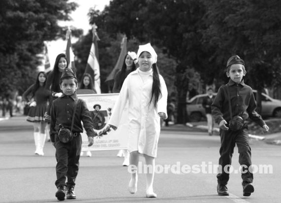 Alumnos de diferentes instituciones desfilaron ante un palco conformado por autoridades e invitados especiales. La Municipalidad de Pedro Juan Caballero organizó el evento que tuvo una amplia repercusión local. Foto: Diego Lozano.