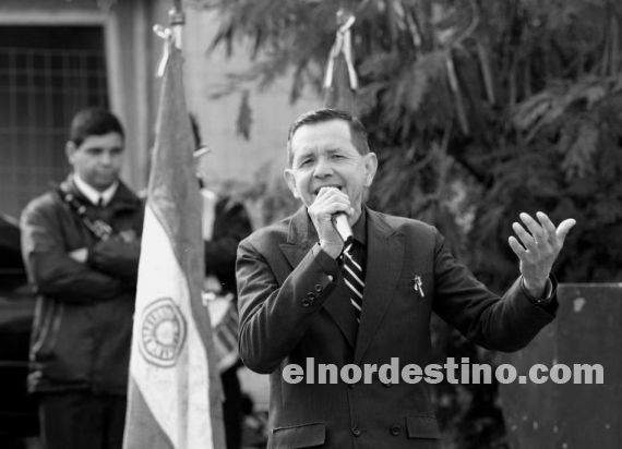 El cierre del acto estuvo a cargo del poeta y declamador pedrojuanino Julio Cesar Jara Cabral, quien es versos y rimas realizó una reseña histórica de lo sucedido en los cañadones chaqueños desde 1932 hasta 1935. Foto: Diego Lozano.