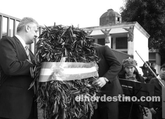 El acto tuvo lugar enfrente al Columbario en donde descansan los restos de más de 680 gloriosos ex combatientes de la Guerra del Chaco, tuvo lugar un emotivo acto de recordación del 80º Aniversario de la firma de la Paz del Chaco. Foto: Diego Lozano.
