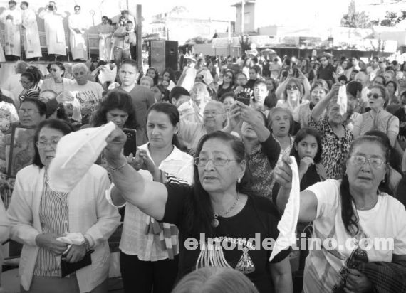 A partir de que el monseñor Sosa Gaona concede el permiso, el intendente municipal don Ramón Gil Sánchez declara a Nuestra Madre del Perpetuo Socorro como Santa Patrona de la ciudad de Pedro Juan Caballero. Foto: Diego Lozano.