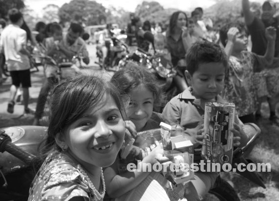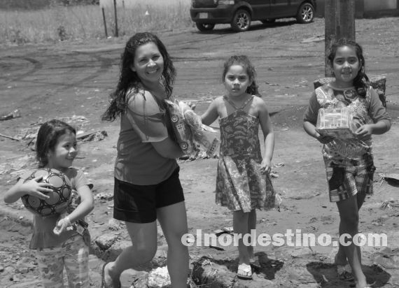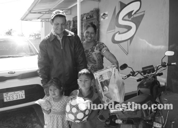 Como es tradición desde hace diez años, el joven empresario y concejal municipal Éver Salinas, acompañado por su familia, cumplió con el sueño de los niños que esperan a Papá Noel en los diversos barrios de Pedro Juan Caballero. Foto: Diego Lozano.