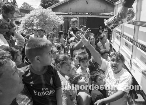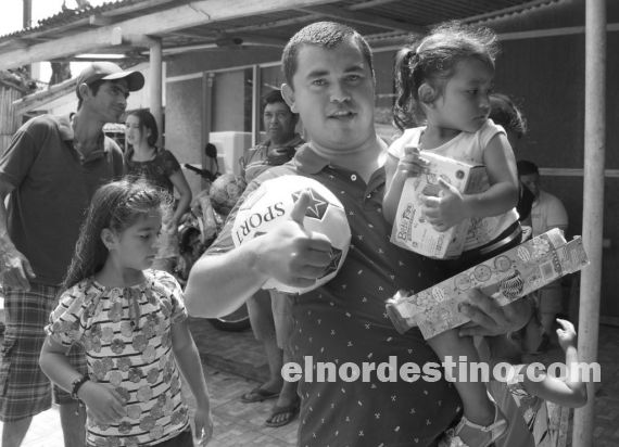“De chico yo también seguía a los camiones que repartían juguetes, y ahora nos toca a mí y a mi familia entregar estos regalos”, expresó el joven empresario de la industria textil. Foto: Diego Lozano.