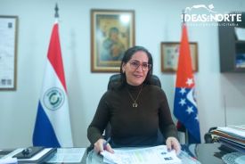 San Gerardo visitó el Palacete Municipal de Pedro Juan Caballero en compañía del padre Cástulo Salinas, quien aprovechó la ocasión para solicitar apoyo a la intendente comunal licenciada Mahiba Carolina Yunis Acevedo en la proximidad del Novenario del Santo. (Foto: Diego Lozano para Ideas del Norte Consultora Publicitaria).