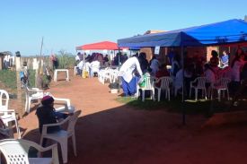 La estructura de Universidad Central del Paraguay en Acción se trasladó hasta el campo de juego del Club Sportivo Obrero de Pedro Juan Caballero con un equipo de profesionales médicos y académicos de la Facultad de Ciencias Médicas. (Foto: Asesoría de Prensa de la UCP).
