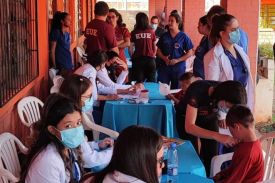 Universidad Central del Paraguay ofrece periódicamente atención médica gratuita y promoción de la Salud, además de entrega de medicamentos. Participan profesionales docentes, médicos y alumnos de los últimos años de la Carrera de Medicina. (Foto: Asesoría de Prensa de la UCP).